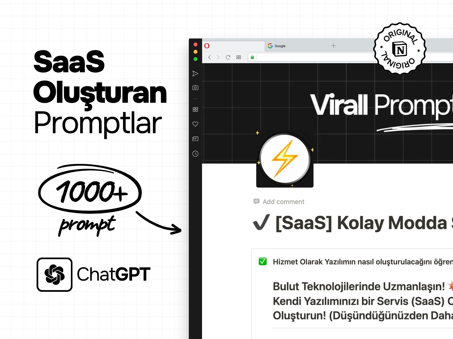 SAAS YARATICISI: Yazılım Dünyasına Adım Atmak İsteyenler için 1000+ Notion Promptları, ChatGPT/Gemini/Claude ile Uyumluluk