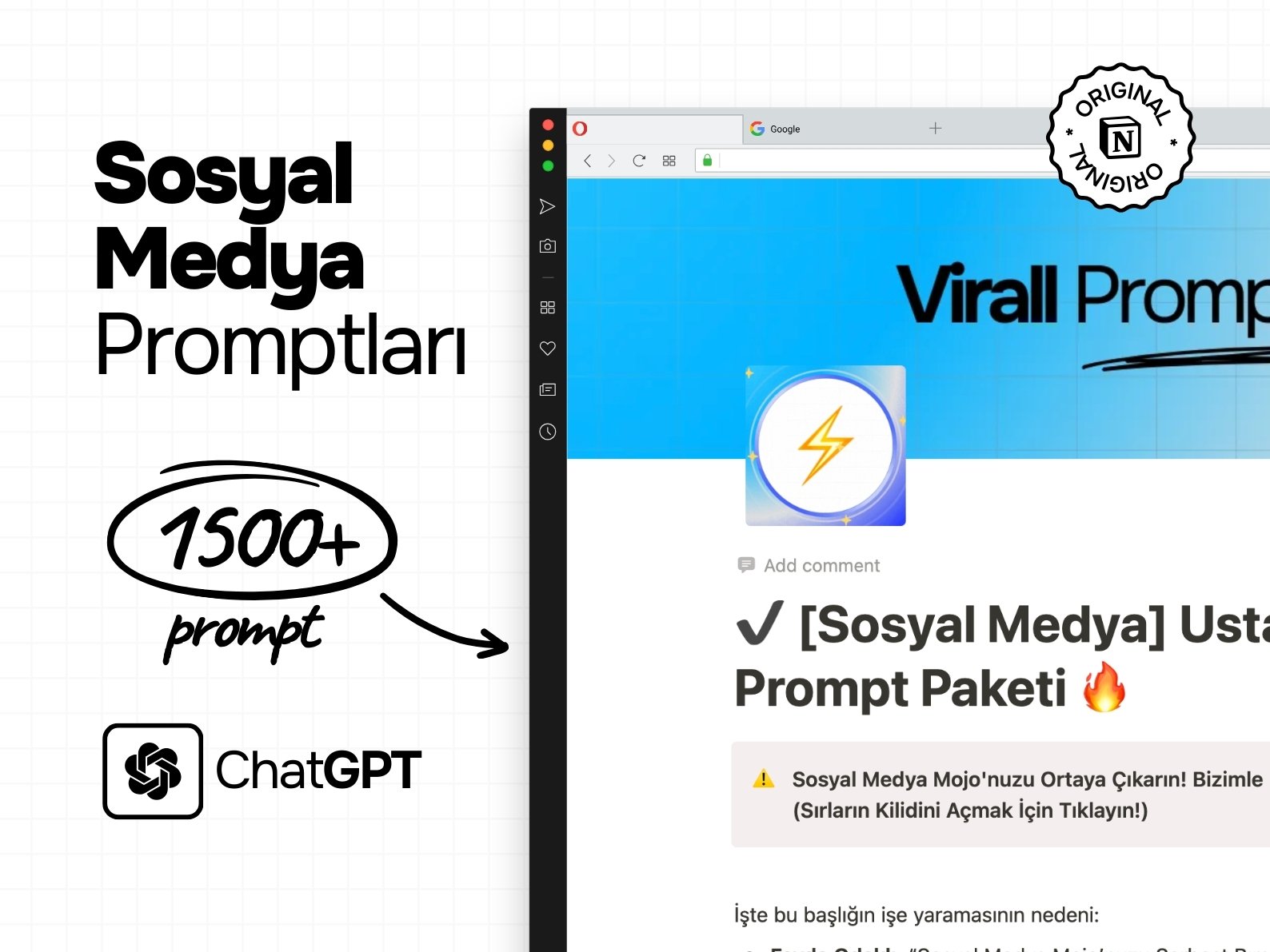 1500+ Sosyal Medya Promptları, ChatGPT Uyumlu, Notion Dostu 🚀 Viral İçerik İçin Sosyal Medya Promptları