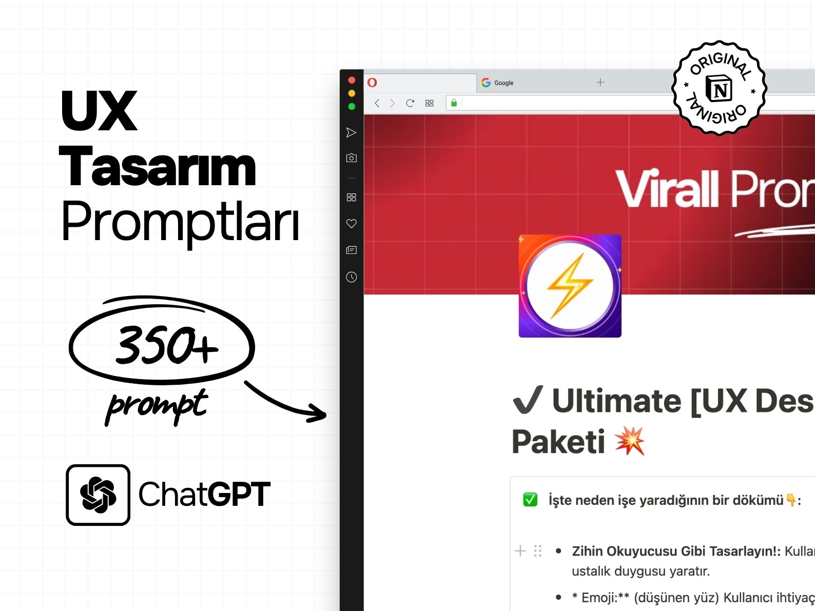 ChatGPT UX Tasarım Promptları, 350+ Notion Paketi – ChatGPT, Notion Uyumlu, Çalışma Akışınızı Güçlendirin 🚀
