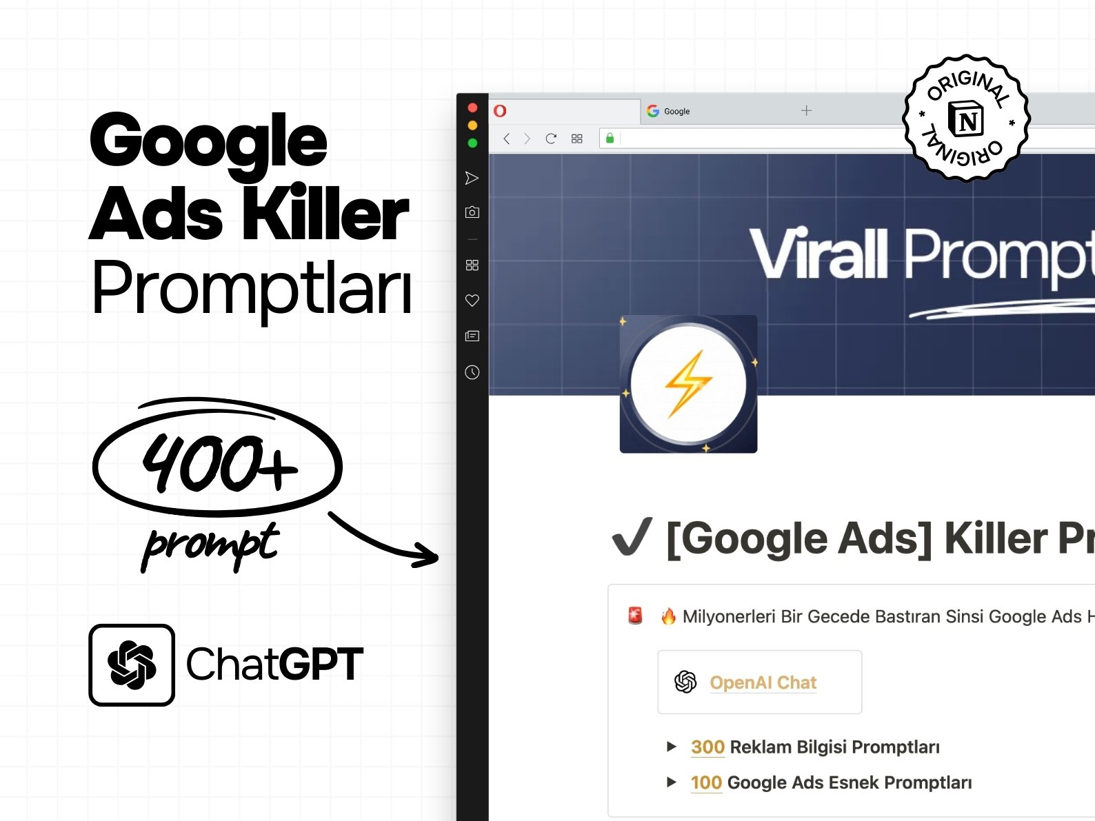 400+ Google Ads Prompt Paketi, ChatGPT Uyumlu, Notion Şablonu, Yapay Zeka Promptlarıyla Etkileyici Reklamlar Hazırlayın, Kolay Notion Entegrasyonu
